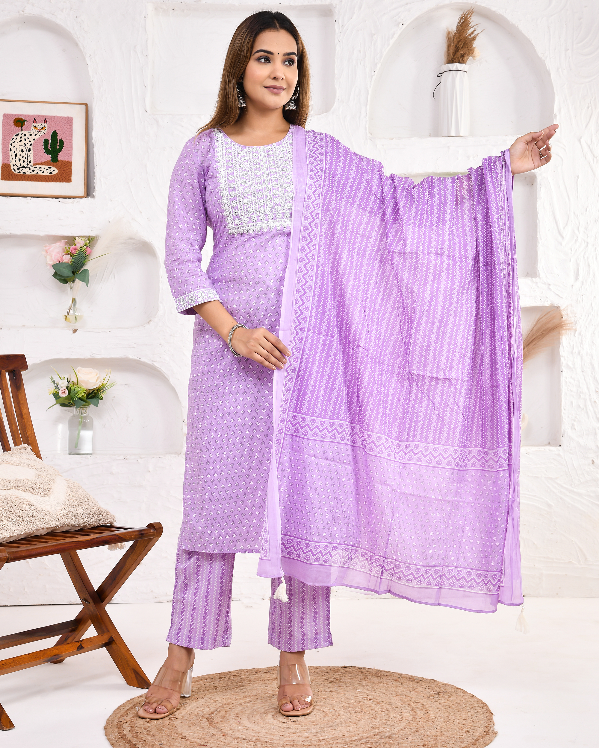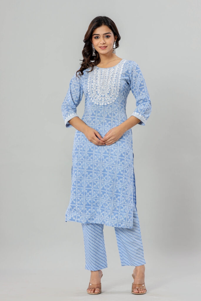 We produce Cotton Short Kurtis, Jaipuri Printed Long Kurtis, Plain Dye Kurtis, Kurti Pant Sets, Fancy Co-ord Sets, 3 Piece Kurta Pant Dupatta Sets, Anarkali Suit Sets and Womens Every day Cotton Pants etc